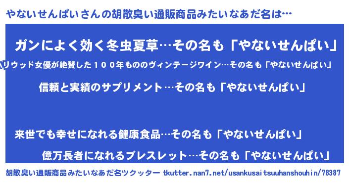 | 欧米人風あだ名 | 『やないせんぱい・ステッグマイヤー』 |