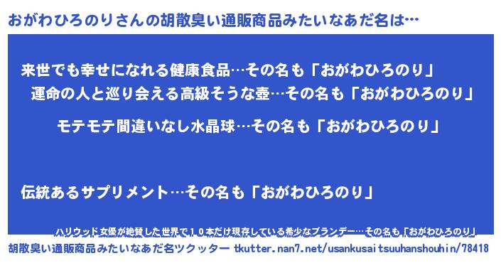 | ヘコむあだ名 | 『おがにゅー』『おがわひろのり(笑)』 |