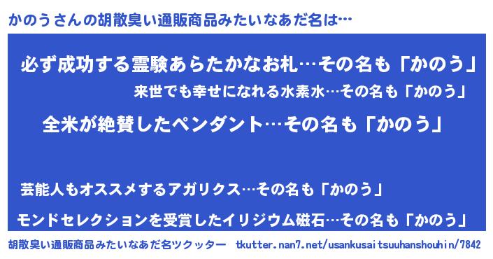 | ヘコむあだ名 | 『かのっちょ』『かのっふぃ~』 |