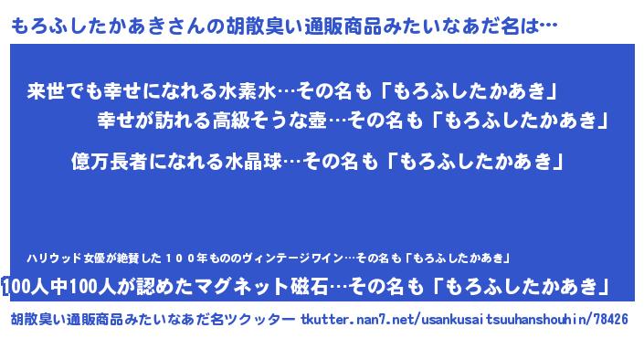 | ヘコむあだ名 | 『もろふぇ~』『もろふしたかあき(遠い目)』 |