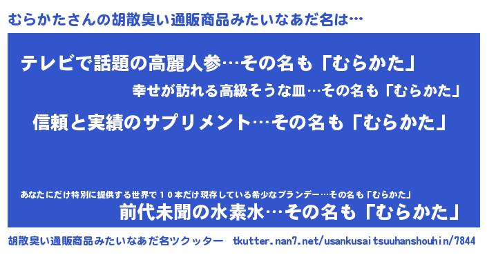 | 意味不明あだ名 | 『とにかく怪しいむらかた』 |
