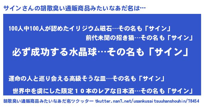| 男性向けラノベタイトル風あだ名 | 『サインの憂鬱』『サインスレイヤー』 |
