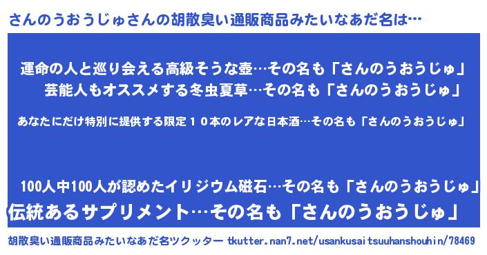 | 男性向けラノベタイトル風あだ名 | 『この素晴らしい世界にさんのうおうじゅを!』 |