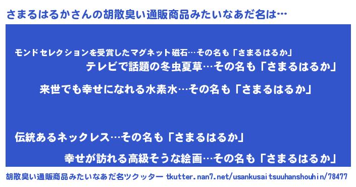 | ヒーロー風カッコイイあだ名 | 『ネオサマルハルカ』『魔戒騎士サマ』 |