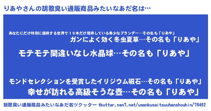 | 意味不明あだ名 | 『ペロリンりあや』『ニラ科りあや属』 |