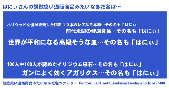 | ヘコむあだ名 | 『豆乳』『はにぃ(笑)』『はににゅー』 |