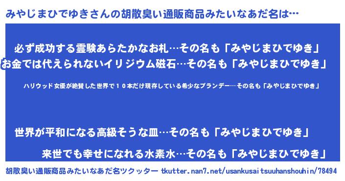 | 意味不明あだ名 | 『住所不定無職みやじまひでゆき(93歳)』 |
