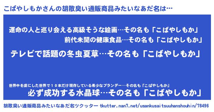 | 意味不明あだ名 | 『自称こばやしもか』 |