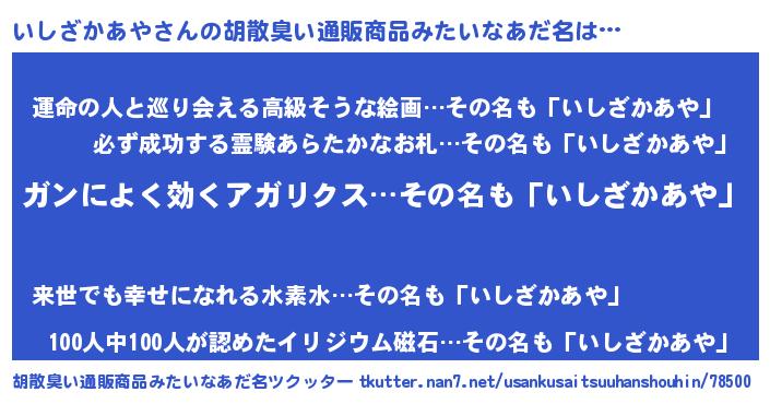 | 意味不明あだ名 | 『自称いしざかあや』 |