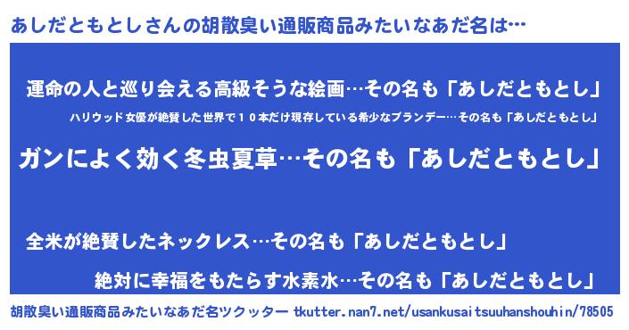 | 意味不明あだ名 | 『自称あしだともとし』 |