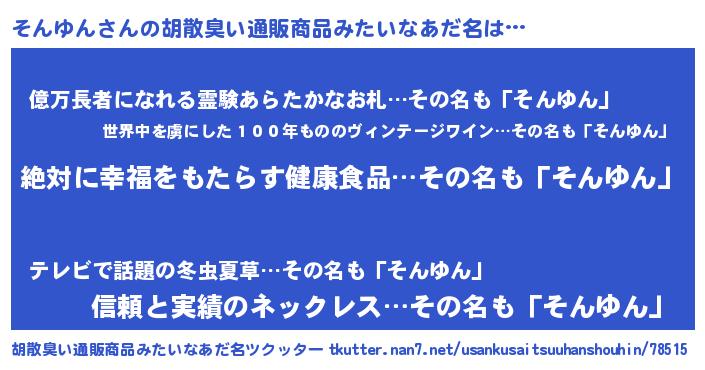 | 意味不明あだ名 | 『永久保存そんゆん』『ペロリンそんゆん』 |