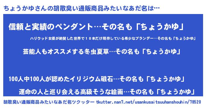 | 意味不明あだ名 | 『自称ちょうかゆ』 |