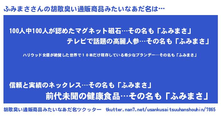 ふみまささんの胡散臭い通販商品みたいなあだ名をツクッター!