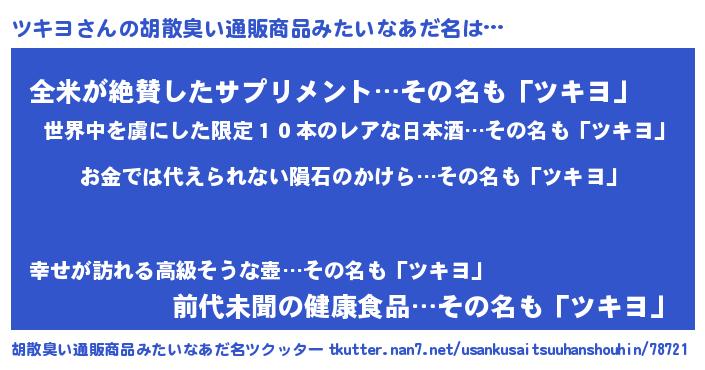 | ヘコむあだ名 | 『ツキっぺ』『ツキヨ(小並感)』 |