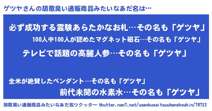 ヘコむあだ名 | 『ゲツにー』『ゲツヤ(苦笑)』 |