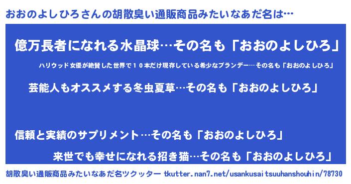 | 肩書あだ名 | 『おおのよしひろ総統』 |