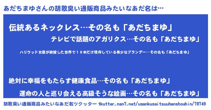 | 意味不明あだ名 | 『住所不定無職あだちまゆ(81歳)』 |