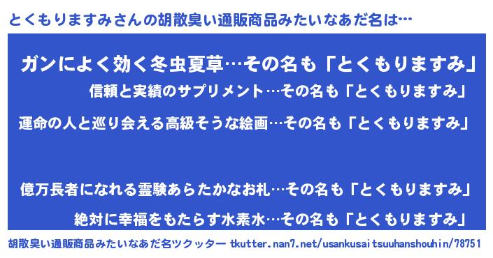 | 肩書あだ名 | 『とくもりますみ総理大臣』 |