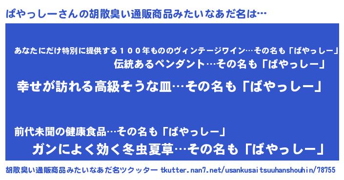 | 欧米人風あだ名 | 『ばやっしークリステル』 |