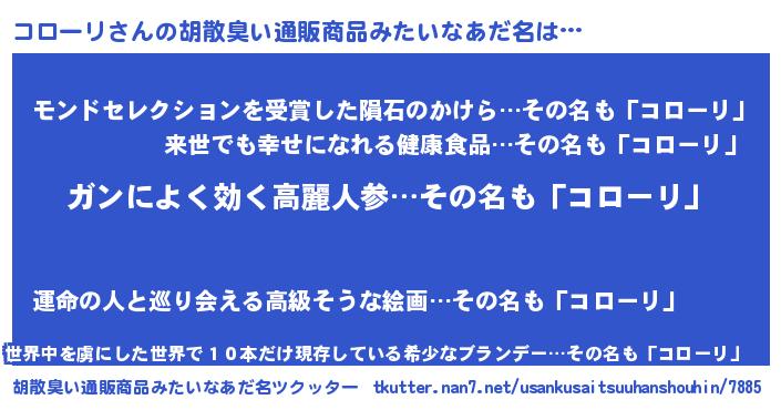 | 意味不明あだ名 | 『自称コローリ』『ニラ科コローリ属』 |