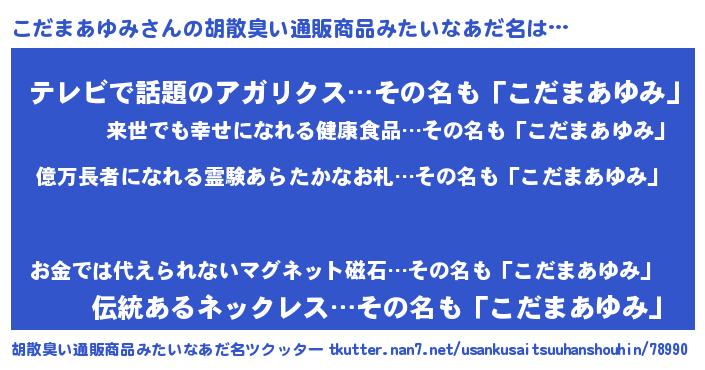 | ヒーロー風カッコイイあだ名 | 『スーパーコダマアユミ』『炎刃騎士コダ』 |