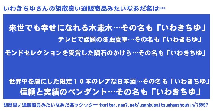 | ヘコむあだ名 | 『いわきちゆ(苦笑)』『いわっちょ』 |