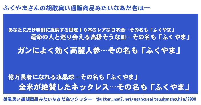 | 意味不明あだ名 | 『自称ふくやま』『ふくやまフォーエバー』 |
