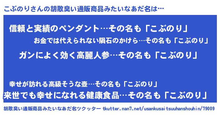 | ヘコむあだ名 | 『こぶを』『こぶのり(震え声)』 |