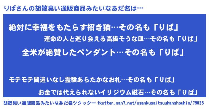 | ヘコむあだ名 | 『りばっちょ』『りば(笑)』 |