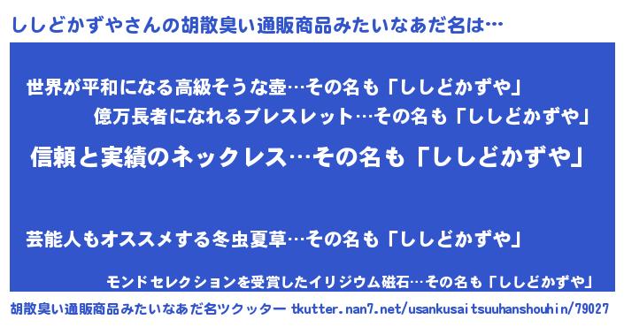 | 意味不明あだ名 | 『とにかく怪しいししどかずや』 |