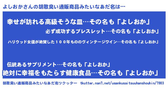 | ヒーロー風カッコイイあだ名 | 『仮面ヨシダー』『ウルトラよしおかマン』 |