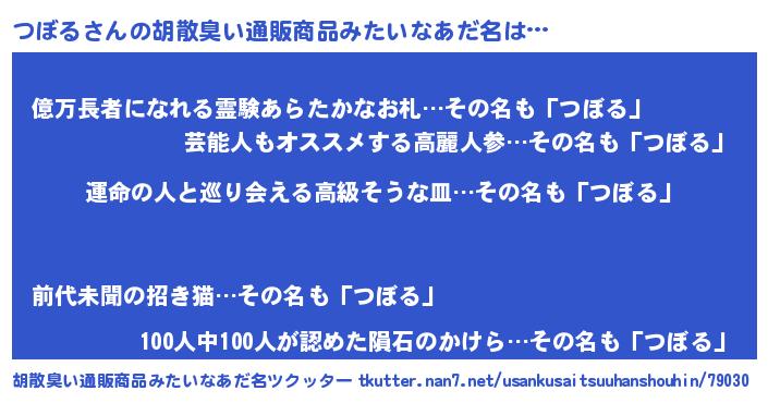 | 女子向けラノベタイトル風あだ名 | 『つぼるの婚約者』『つぼる恋絵巻』 |