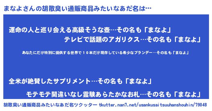 | ヘコむあだ名 | 『酢こんぶ』『まなにゅー』 |