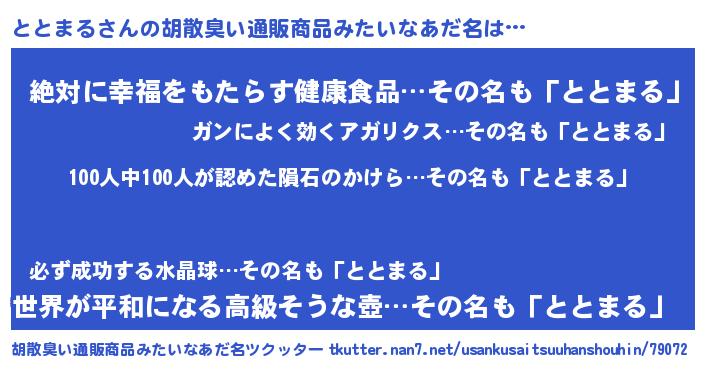 ととまるさんの胡散臭い通販商品みたいなあだ名をツクッター!