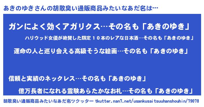 | 意味不明あだ名 | 『あきのゆきフォーエバー』 |