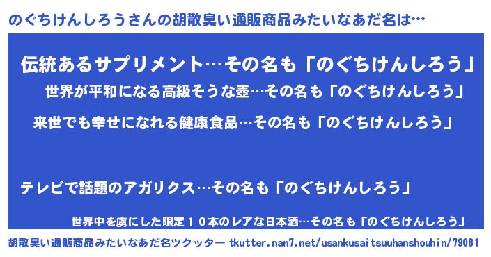 | 意味不明あだ名 | 『永久保存のぐちけんしろう』 |