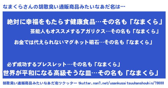 | ヒーロー風カッコイイあだ名 | 『愛の使者なまくら』『ネオナマクラ』 |