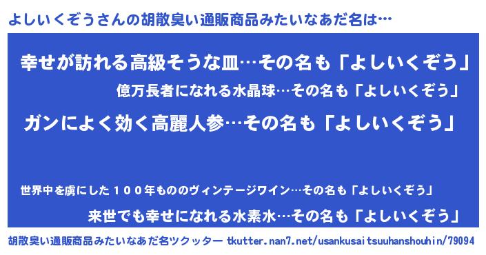 | ヘコむあだ名 | 『つくし』『よしいくぞう(震え声)』 |