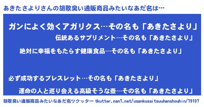 | 意味不明あだ名 | 『永久保存あきたさより』 |
