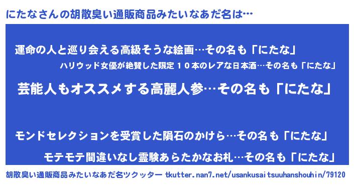 | 意味不明あだ名 | 『自称にたな』『にたなフォーエバー』 |