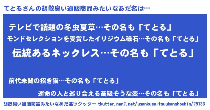 | 意味不明あだ名 | 『とにかく怪しいてとる』『自称てとる』 |