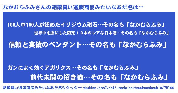 | 意味不明あだ名 | 『とにかく怪しいなかむらふみ』 |