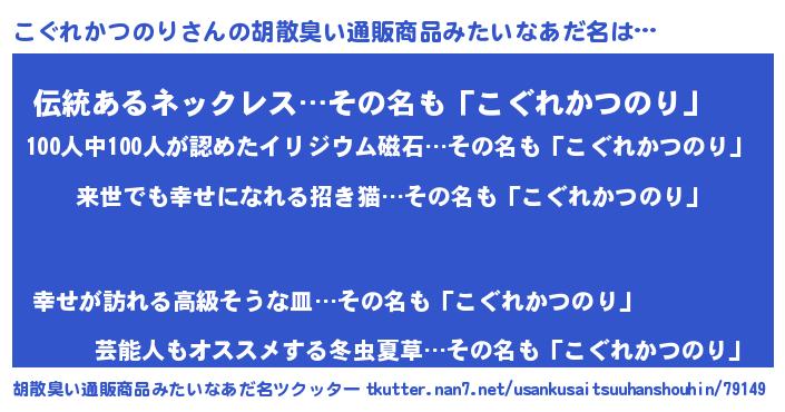 | 意味不明あだ名 | 『永久保存こぐれかつのり』 |