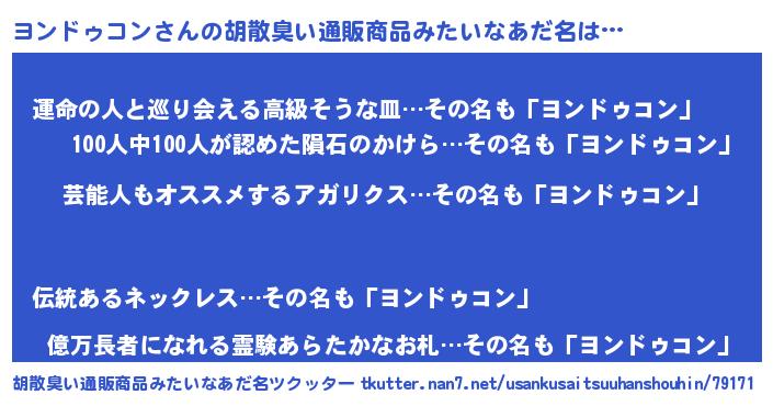| 欧米人風あだ名 | 『トリンドルヨンドゥコン』 |