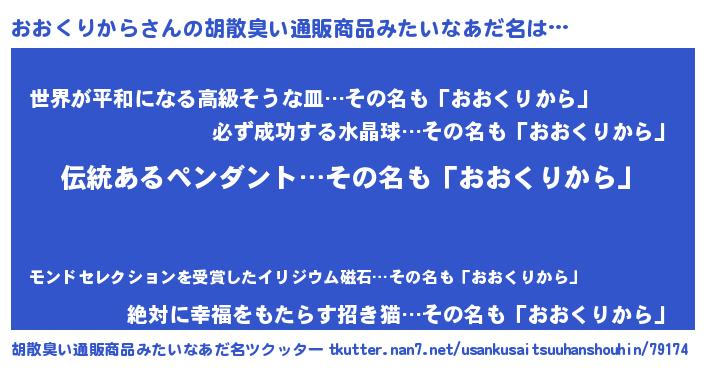 | 意味不明あだ名 | 『とにかく怪しいおおくりから』 |