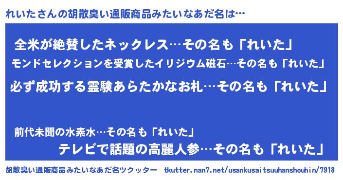 | 意味不明あだ名 | 『ペロリンれいた』『自称れいた』 |