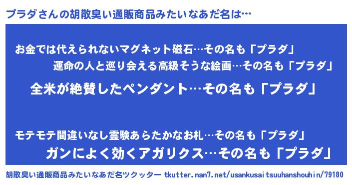| 意味不明あだ名 | 『とにかく怪しいプラダ』『自称プラダ』 |