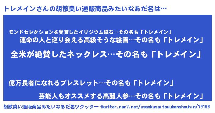 | ヒーロー風カッコイイあだ名 | 『炎刃騎士トレ』『天空の使者トレメイン』 |