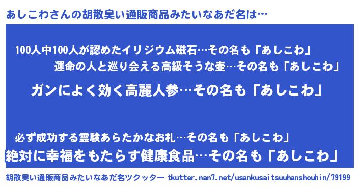 | 意味不明あだ名 | 『自称あしこわ』『永久保存あしこわ』 |
