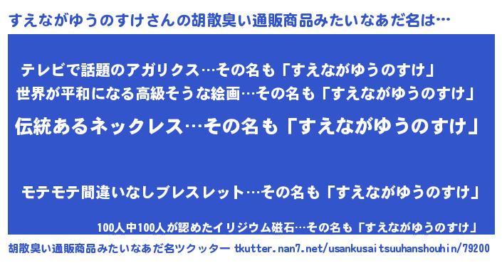 | 意味不明あだ名 | 『もやし科すえながゆうのすけ属』 |
